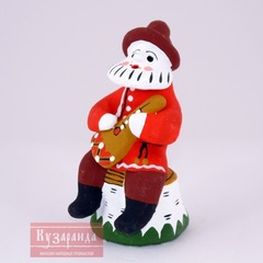 Игрушка изготовлена в Каргополе (Архангельская область) в соответствии с традиционными канонами народной игрушки. Форма "Мужичок" - один из вариантов свободного решения сюжетов, характерного для каргопольской игрушки. В композиционной каргопольской глиняной игрушке отражалась фантазия авторов, наблюдения за природой и народным бытом.